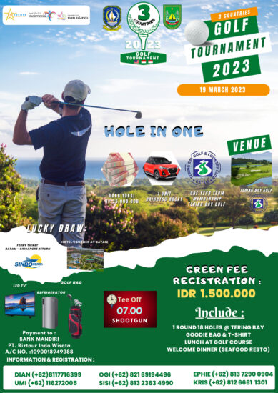 Riz Event menangkap peluang itu dengan mencoba membuat sebuah Tournament Golf 3 Countries yakni, Indonesia-Malaysia-Singapura, yang akan dilaksanakan pada 19 Maret 2023 mendatang di Lapangan Golf Tering Bay, Nongsa.